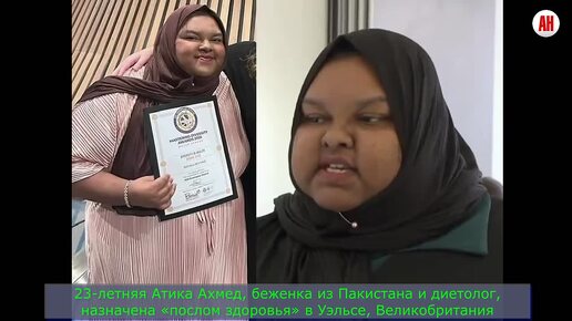 23-летняя Атика Ахмед, беженка из Пакистана и диетолог, назначена «послом здоровья» в Уэльсе, Великобритания