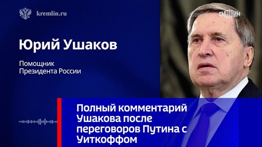 Полный комментарий Ушакова после переговоров Путина с Уиткоффом