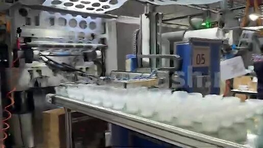 Термоформовочная машина с однорядной формой для чашек с роботом-извлекателем и укладкой на ленту