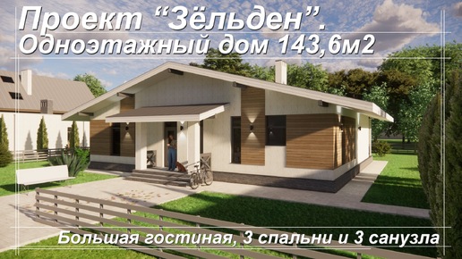 Проект Зёльден Одноэтажный дом 143,6м2. Большая гостиная 3 спальни и 3 санузла