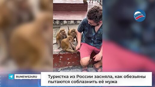 Туристка из России засняла, как обезьяны пытаются соблазнить её мужа