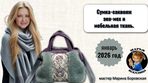 Сумка саквояж эко мех и мебельная ткань Голубая дымка от мастера Марины Боровской