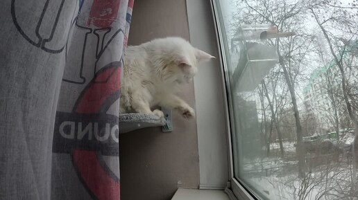 Белый великан Каспер: когда лоток надоел, пора на охоту! #мейнкун #каспермейнкун #птицывшоке