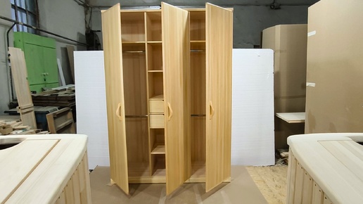 Кедровый трёхстворчатый платяной шкаф