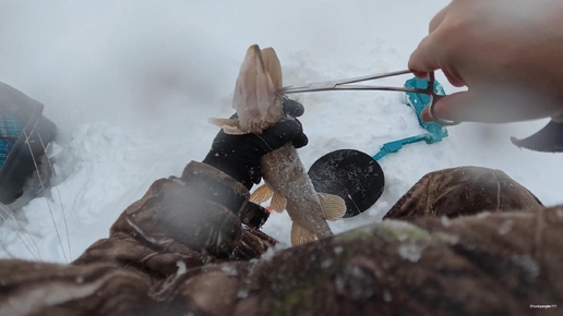 Проверяем жерлицы. Устье реки Волхов, совсем слабо со щукой.