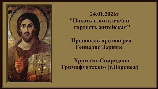 24.01.2026г "Похоть плоти, очей и гордость житейская" Проповедь протоиерея Геннадия Заридзе. Храм свт.Спиридона Тримифунтского (г.Воронеж)