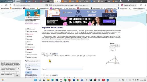 ЕГЭ 2026. Найти часть гипотенузы прямоугольного треугольника.