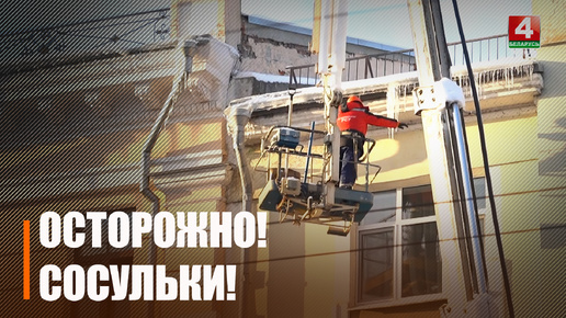В Гомеле продолжают удалять сосульки с крыш зданий