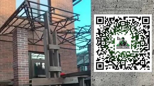 Строительство козырька из металлочерепицы с подшивой на кирпичных колоннах мкр. Черемушки.