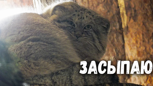 Манул Шу засыпает в свете фонарей. Ленинградский зоопарк
