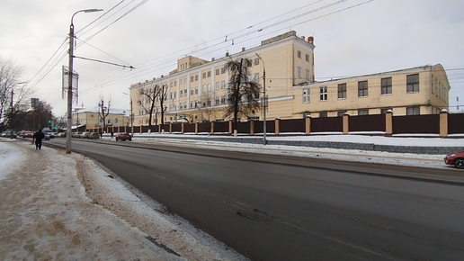 Зимний день в городе Орле. Жёлтое здание это орловский хлебокомбинат. Зима, январь 2026 год. Это город Орёл