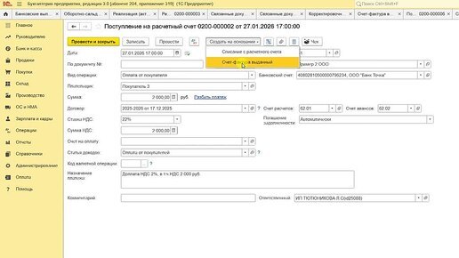 1С-инструкция. Корректировочный СФ на аванс при доплате НДС в 2026 г. до отгрузки