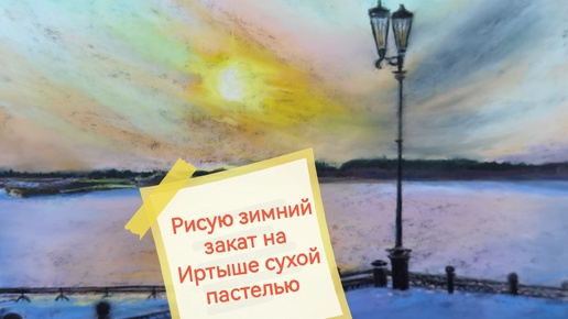 Рисую зимний закат на Иртыше сухой пастелью