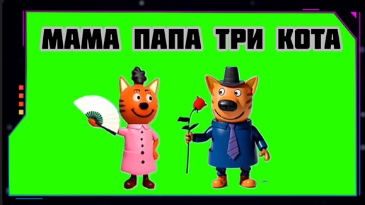 МАМА ПАПА ТРИ КОТА анимация на зелёном экране. Хромакей футаж GREEN SCREEN.