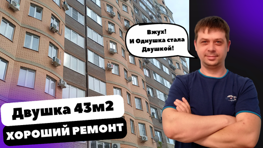 1к квартира 43 квадрата переделанная в 2х комнатную легально г. Гоярчий Ключ
