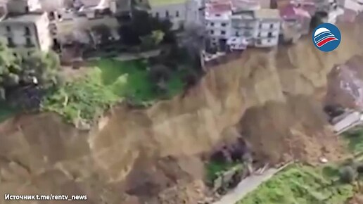 Оползень разрушил часть города в Нишеми на Сицилии, дома висят над пропастью