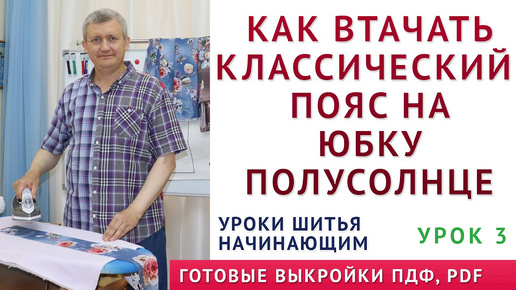 урок 3 - как втачать классический пояс на юбку полусолнце, УРОКИ ШИТЬЯ НАЧИНАЮЩИМ Тимофеев Александр