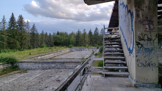 Заброшка в лесу, спортивный комплекс СССР.