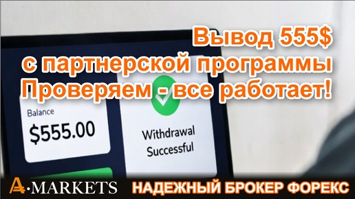 Проверяем вывод 555 долларов партнерского вознаграждения у брокера AMarkets. Все работает отлично.