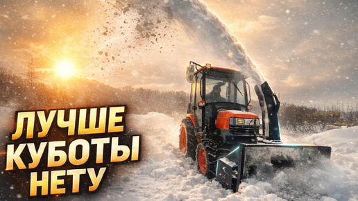 Трактор дизельный Kubota L3408 4WD с РОТОРНЫМ СНЕГОУБОРЩИКОМ убирает снег.