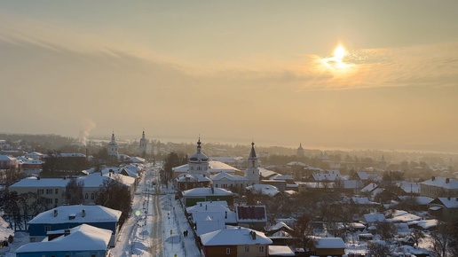 Зарайск. Водонапорная башня, вид на Зарайск с водонапорной башни, Зарайский кремль, вечерний Зарайск-Новогодний.