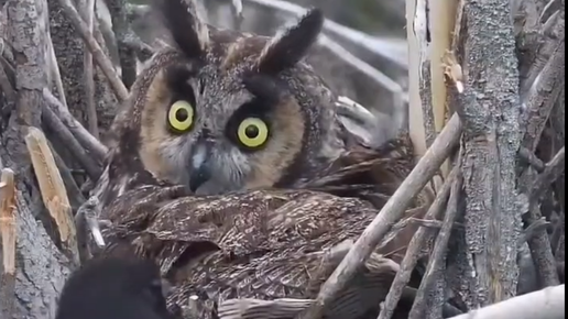 Сова обосновалась в гнезде сороки