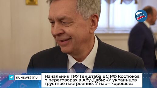 Начальник ГРУ Генштаба ВС РФ Костюков о переговорах в Абу-Даби: «У украинцев грустное настроение. У нас – хорошее»