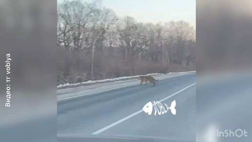 Два здоровенных амурских тигра окружили машину на дороге в Приморье! Водитель знатно испугался!