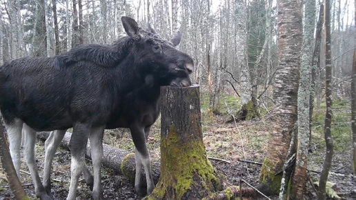 Два лося на солонце. Кадры с фотоловушки Suntek mini301.