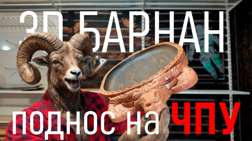 3D поднос с головой барана на ЧПУ по дереву(2К))