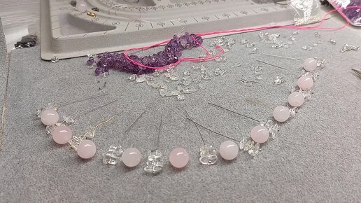 Продолжение работы с розовым кварцем и горным хрусталём