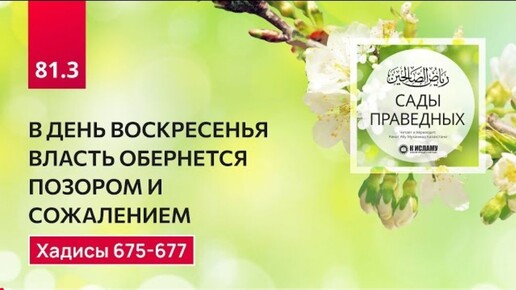 81.3 Сады праведных. В ДЕНЬ ВОСКРЕСЕНИЯ ВЛАСТЬ ОБЕРНЕТСЯ ПОЗОРОМ И СОЖАЛЕНИЕМ. Хадисы 675-677