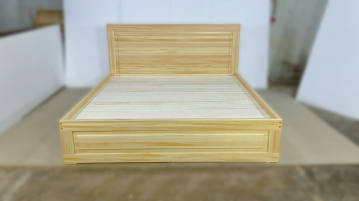 Двухспальная кровать из массива кедра, с четырьмя выкатными ящиками