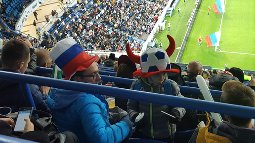 На трибуне во время матча Россия-Швеция в рамках Лиги наций УЕФА в Калининграде (11 октября 2018 года).