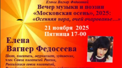 ЕВФ. Елена Вагнер Федосеева. Вечер осенней поэзии.21 ноября 2025. Осенняя пора очей очарованье.