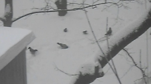 HD Голуби и вороны клюют что-то в снегу. Красивый голубь в конце видео. 13.01.2026. DSCN7318