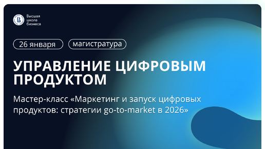 Мастер-класс Маркетинг и запуск цифровых продуктов стратегии go-to- market в 2026 от магистратуры Управление цифровым продуктом ВШБ НИУ ВШЭ