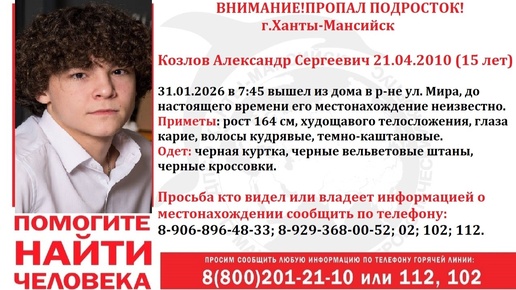 В Ханты-Мансийске ищут 15-летнего подростка