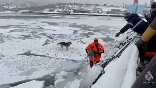 Собак выловили с дрейфующей льдины на Камчатке