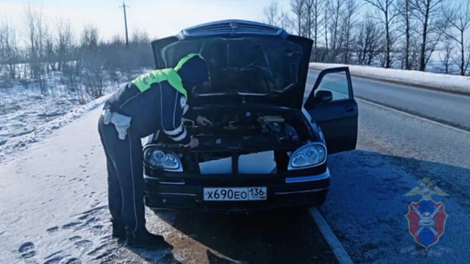 Сотрудники ДПС помогли водителю на трассе под Воронежем в сильный мороз