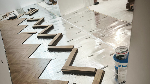 Укладка ламината ёлочкой. Подложка под ламинат и раскладка.
