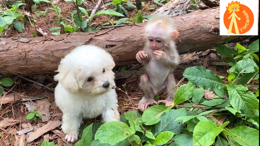 Обезьянка и щенок