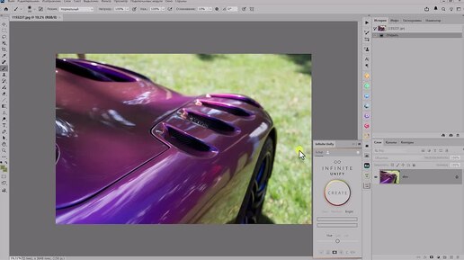 Как за 30 секунд в фотошопе удалить разноцветные блики с крыла автомобиля