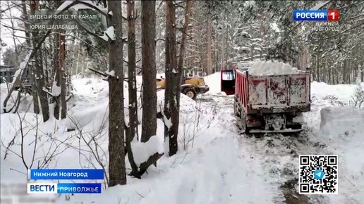 Самосвалы сбрасывали грязный снег в нижегородском лесу