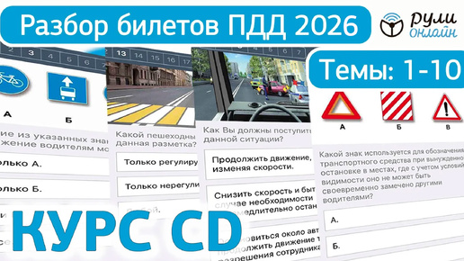 Полный разбор билетов ГИБДД 2026 кат. CD (СД). Темы 1-10 (обновлённый).