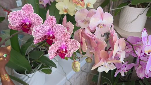 Райские кущи орхидей🌺🌸🌼🍀🪻 Просто болтаю и любуюсь цветением🌺 Новый житель - птичка Мята🐦🩵