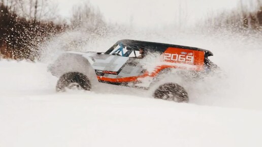 Cool RC dude drives in a snowstorm Ford Bronco R MJX H8P
