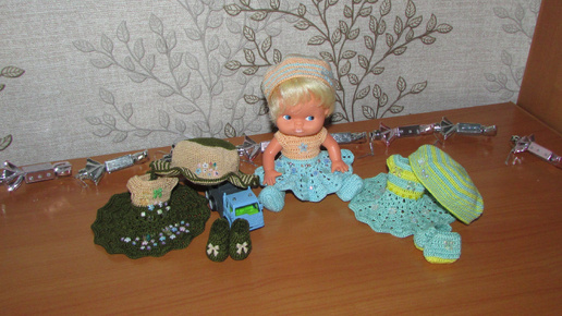 Авторский вязаный наряд\комплект с шапочкой "Цветочная Фея-4" на кукол ГДР Кисс Ми \ Kiss Me