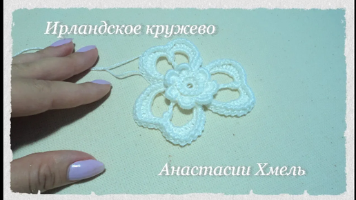 Трилистник крючком с объемной серединкой Ирландское кружево Irish lace