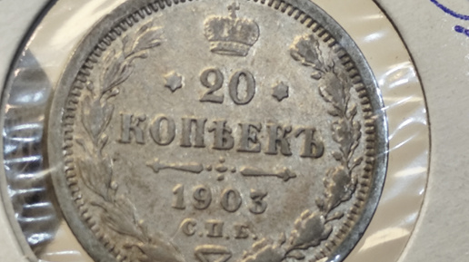 20 копеек 1903 года. СПБ. А.Р. Цена стоимость монеты разновидности